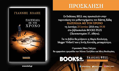 Οι Εκδόσεις BELL υποδέχονται τον Γιάννη Χόλη στη συγγραφική τους ομάδα και παρουσιάζουν το νέο του συναρπαστικό μυθιστόρημα. Το Παιχνίδια με τον Χρόνο είναι ένα καθηλωτικό μεταφυσικό ψυχολογικό θρίλερ, ένα σκοτεινό ταξίδι εσωτερικής αναζήτησης και μια κατάδυση στα βάθη του μυαλού, που θα σας μείνει αξέχαστη.